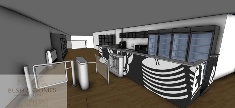 Our most recent job, the new Muscle Works Gym in London. Client wanted a reception designing with a functioning kitchen / Smoothie bar.